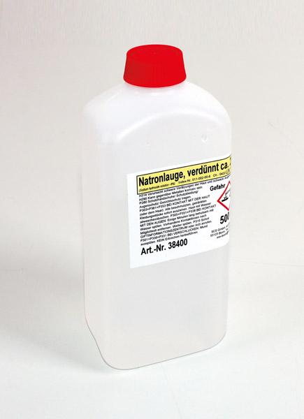 - Sodium hydroxide solution, diluted, aprox. 2 M, 500 ml