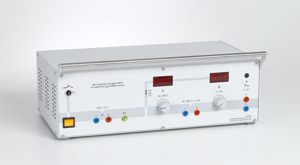 Complete power supply in a 19" casing for recording the constant-current characteristic of electrical machines with a constant voltage in the power class up to 1.0 kW.