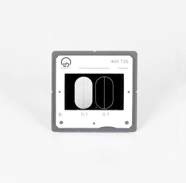 Diaphragm for diffraction experiments in a slide frame with slit and wire to investigate Babinet's principle.