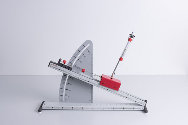 Force decomposition: Simultaneous measurement of normal force and force along the inclined plane possible. With movable suspension device for the dynamometer so that the force can be easily read on the dynamometer.