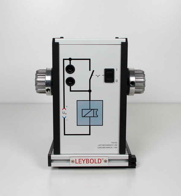 Mechanical load for devices of the 1 kW class mounted on an aluminum base with two shaft ends. The device can be used as a load or as a coupling.
